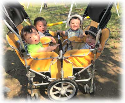 | 園児数 | 0歳 10名、1歳 22名、2歳 22名、3歳 15名、4歳 22名、5歳 20名、 計 111名 |